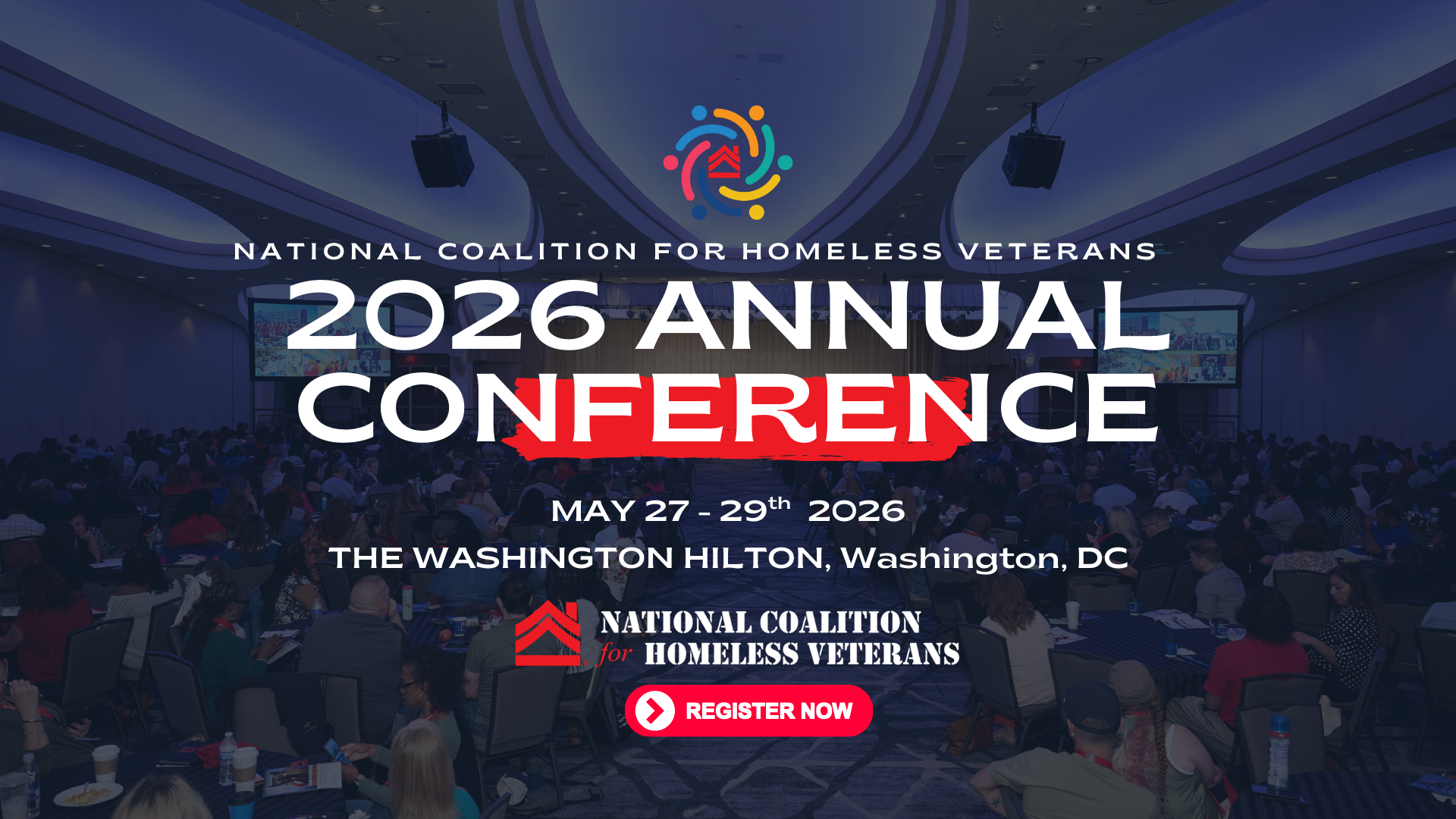 The 2026 NCHV Annual Conference will take place Wednesday, May 27 through Friday, May 29, 2026, at the Washington Hilton in Washington, D.C. The Annual Conference brings together service providers, federal partners, advocates, researchers, and other stakeholders from across the country for several days of learning, collaboration, and information sharing focused on advancing solutions to end veteran homelessness.